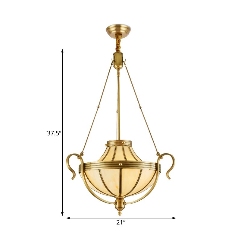 3 Bulbs Jar Ceiling Chandelier Rustic Opal Frosted Glass Suspended Lighting Fixture in Brass