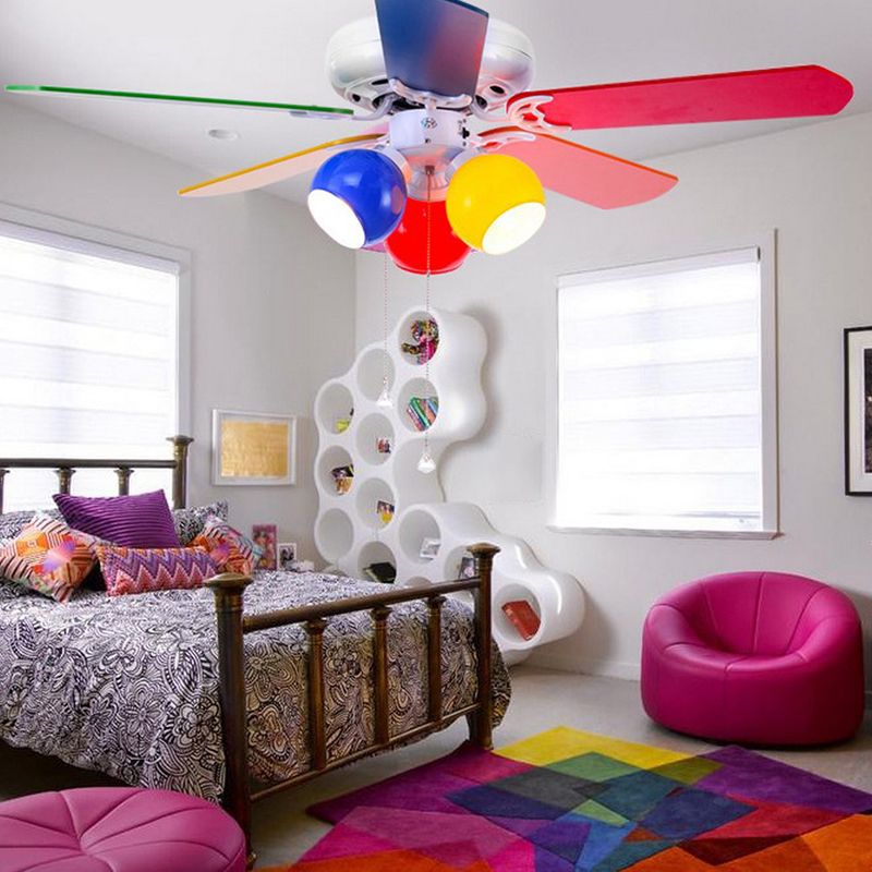 3 - Light Kids Fan Light Multi - Color Metal Ceiling Fan with 5 Blades