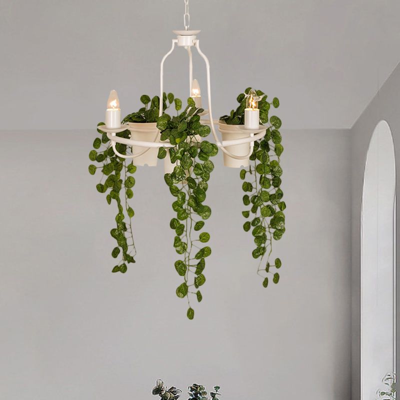 3 Lights Candelabra Chandelier Industrial Black/White Metallic Hanging Pendant Light with Pot Deco