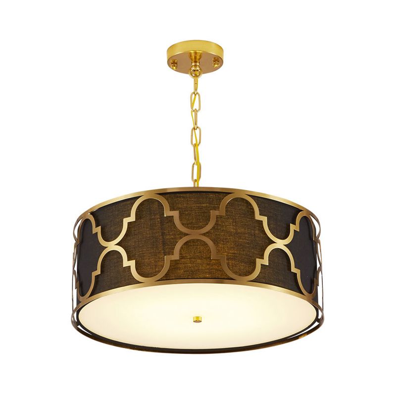 3 Lights Chandelier Light with Drum Shade Fabric Nordic Dining Room Ceiling Lamp in Black/White/Blue, 16"/19.5"/23.5" Wide