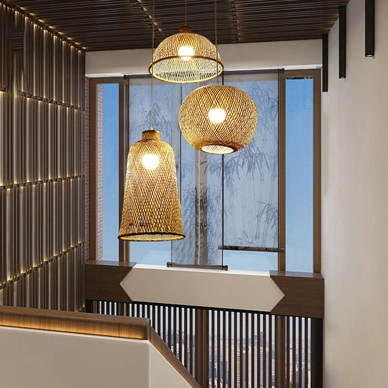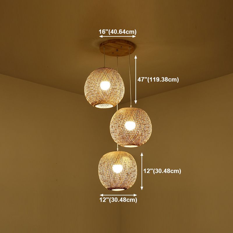 3 Lights Stairway Pendant Asian Style Multiple Hanging Light with Braided Bamboo Shade