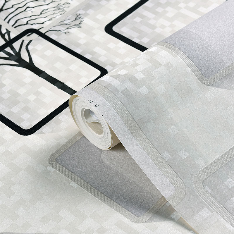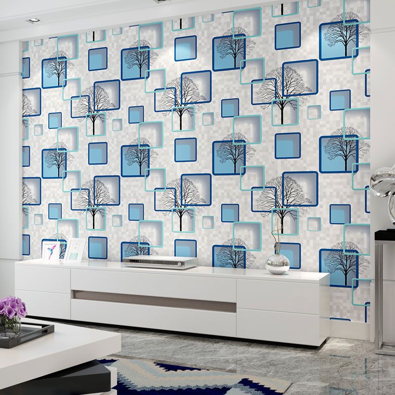 3D Tree and Square Wallpaper Roll for Accent Wall Contemporary Non-Pasted Wall Art, 57.1 sq ft.