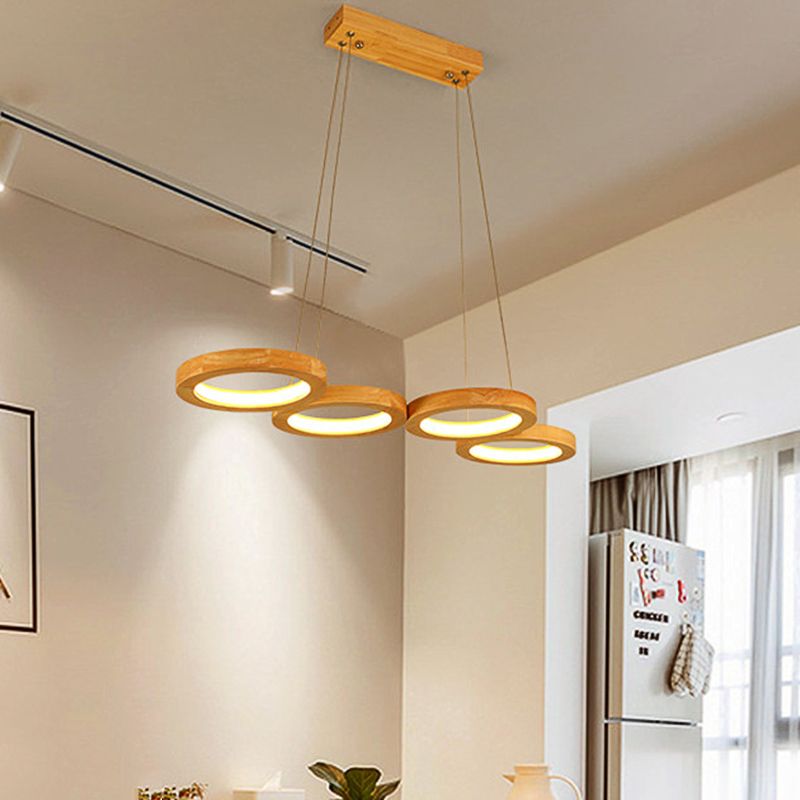 4/5 Lights Dining Room Chandelier with Orbicular Wood Shade Modernist Beige Led Hanging Pendant Light in Warm Light