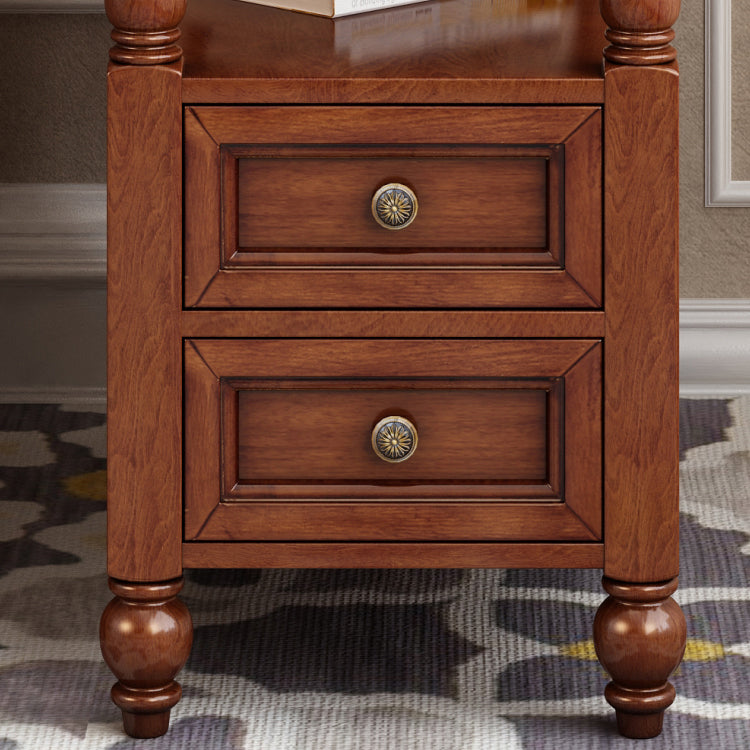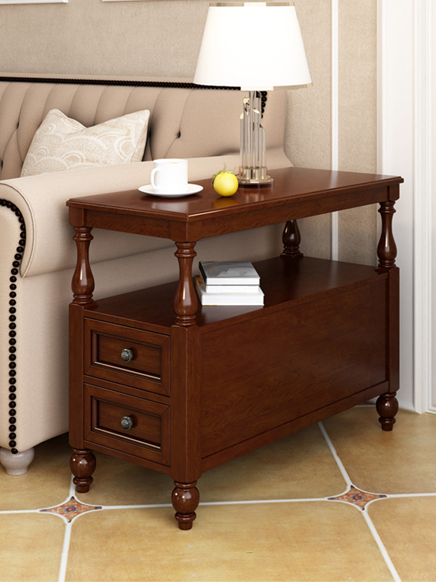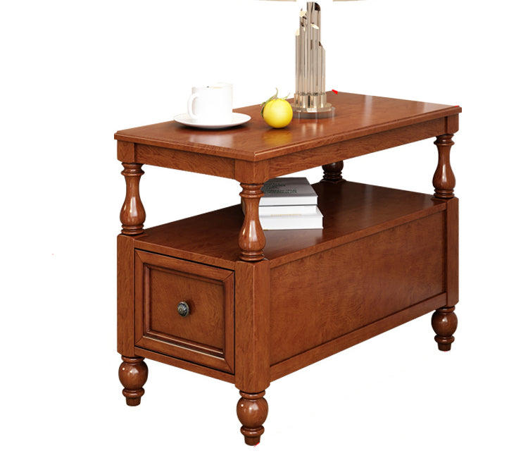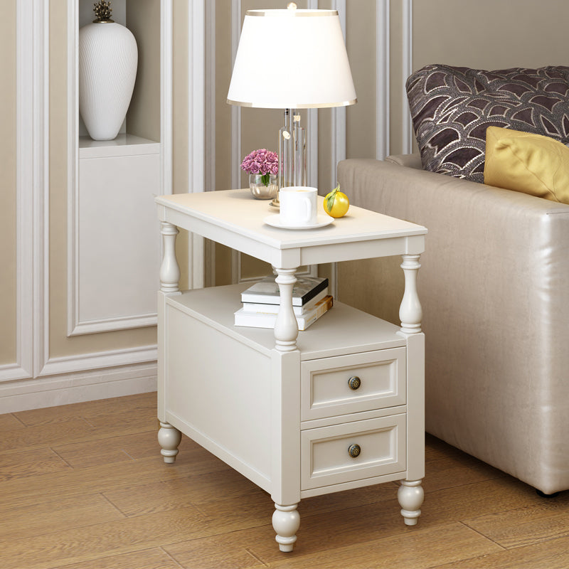 4 Legs Side Table Modern Wood Gold 2-Drawer Side End Snack Table