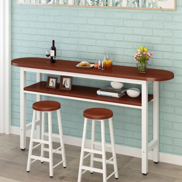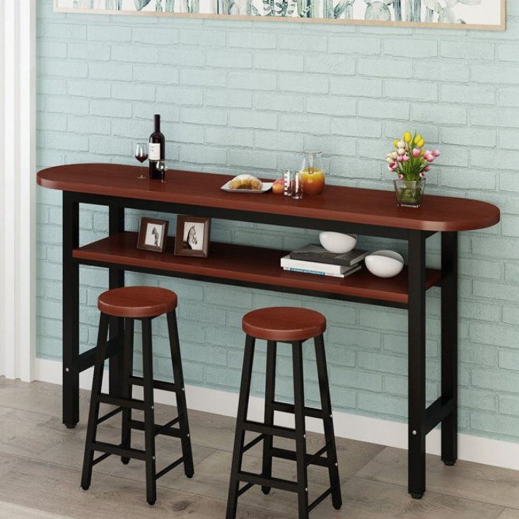 40-inch Height Bar Table Industrial Style Double-deck Wood Top Bar Table, Only Table