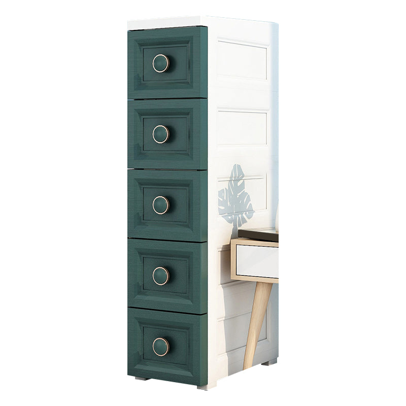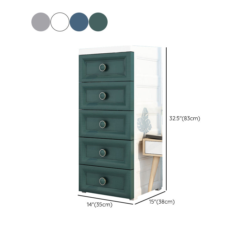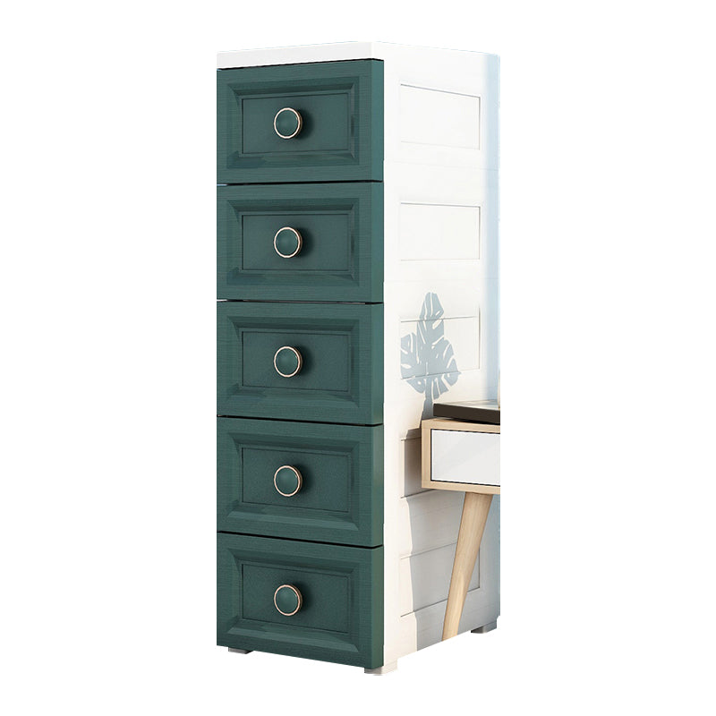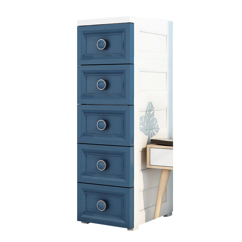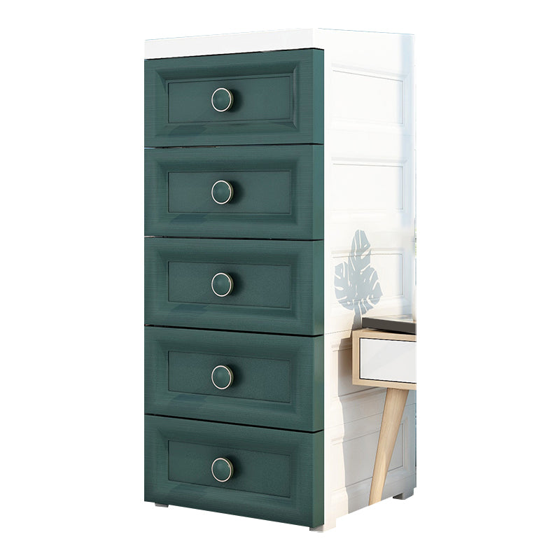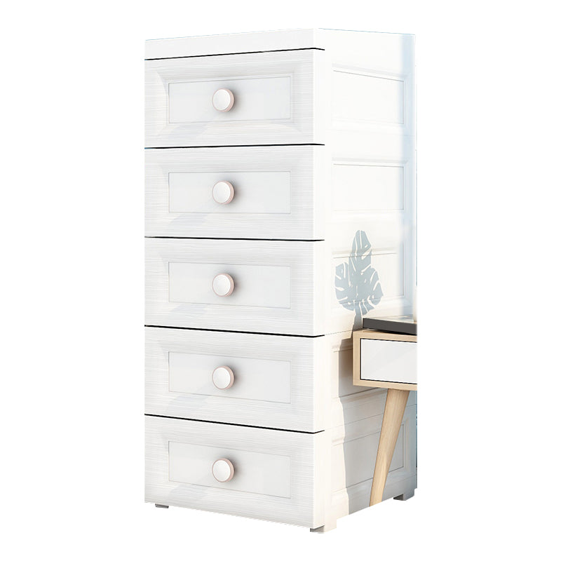 5 Drawers Vertical Kids Nightstand Modernism Plastic Nursery Dresser for Room