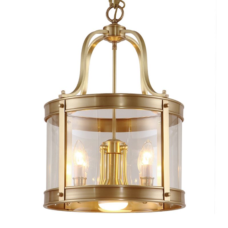 5 Lights Chandelier Pendant Light Colonial Drum Clear Glass Suspension Lamp for Living Room, 14.5"/18" W