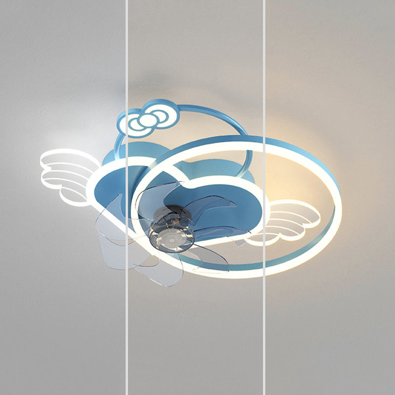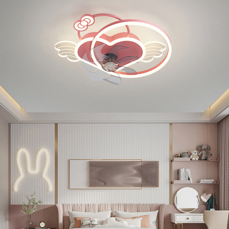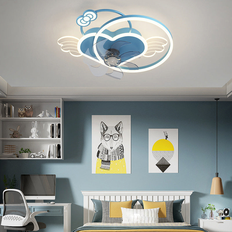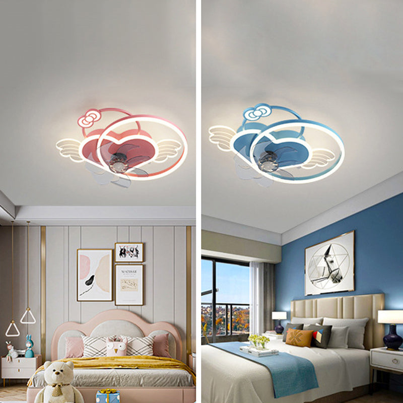7-Blade Fan with Light Children Pink/Blue Ceiling Fan for Bedroom