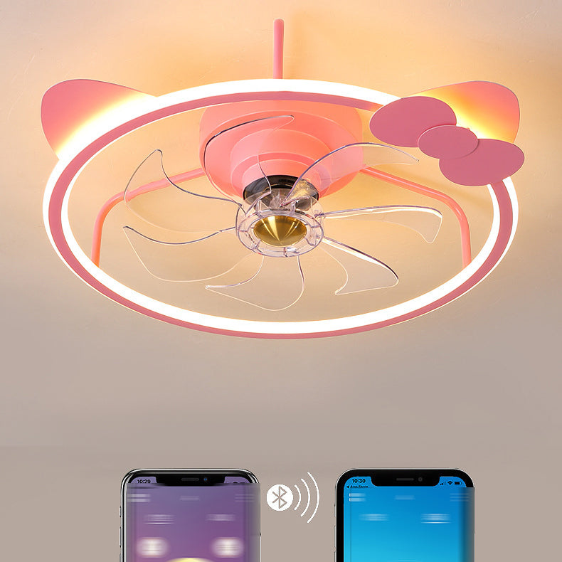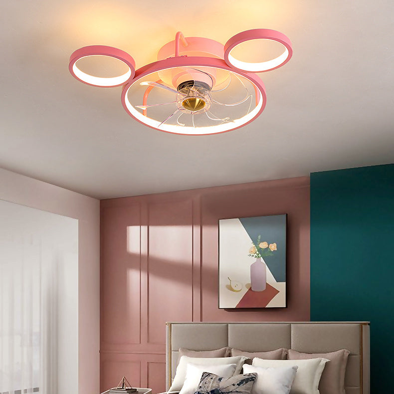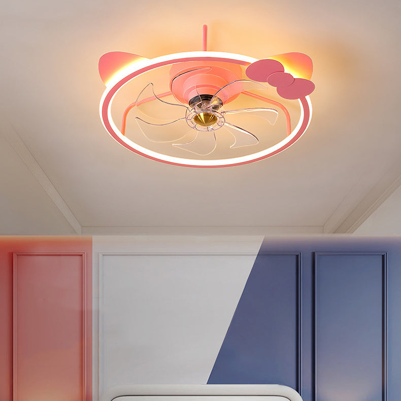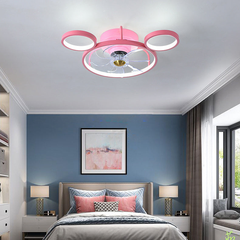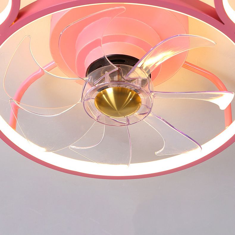 7-Blade Metal Ceiling Fan Children Pink Fan with Light for Room