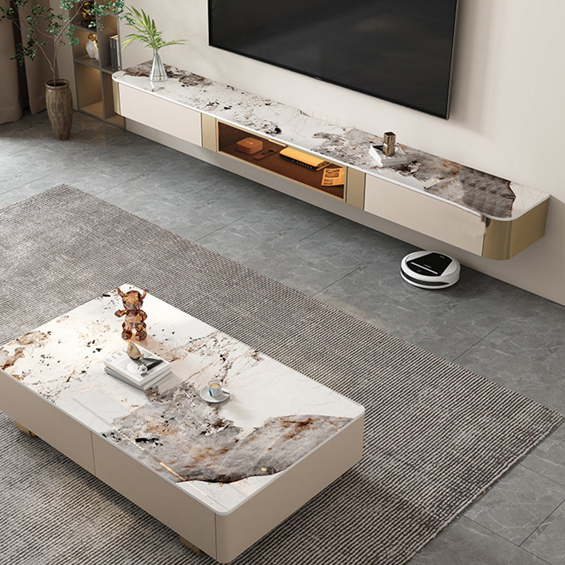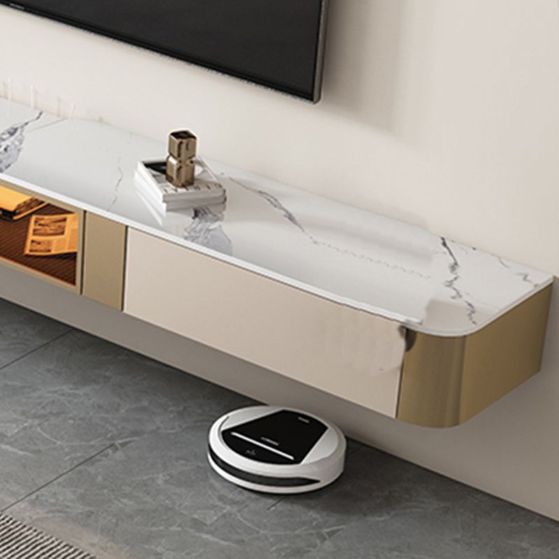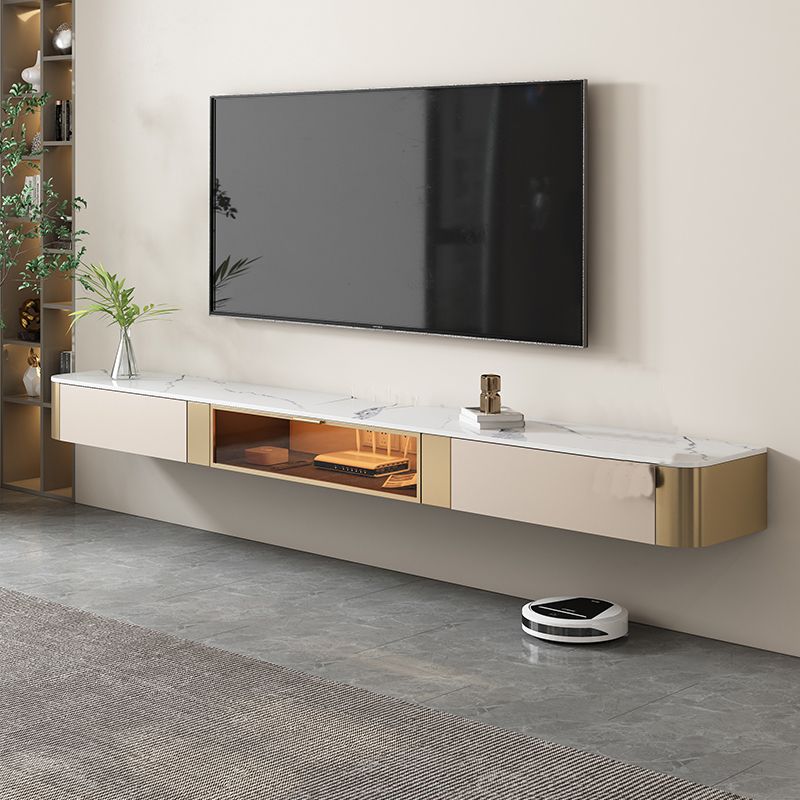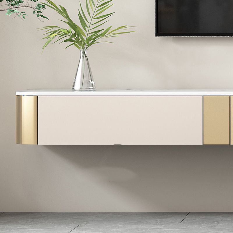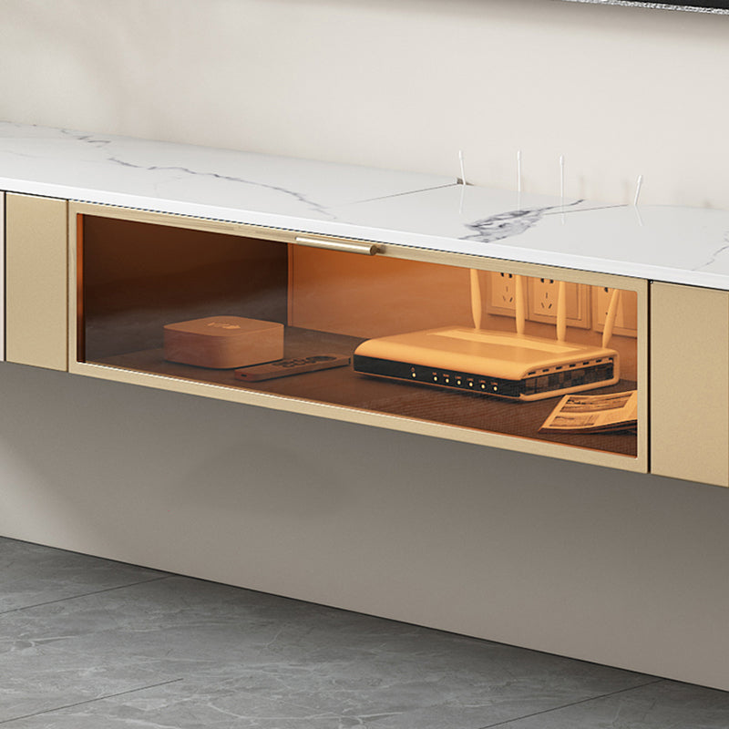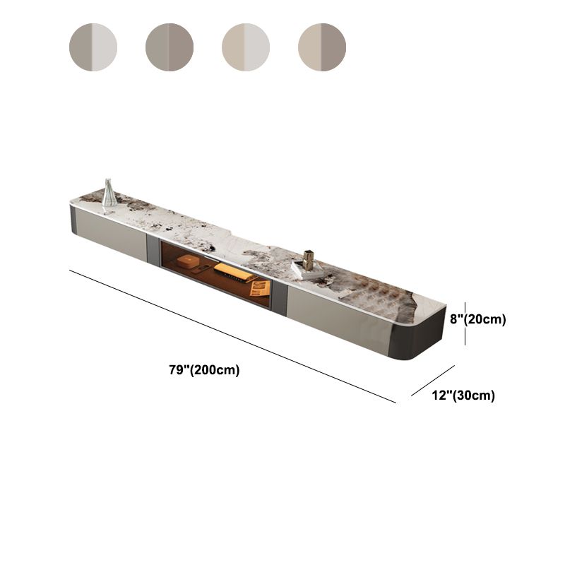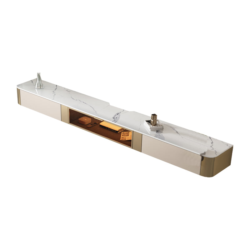 8" Height Glam TV Media Console Stone Enclosed Storage TV Stand