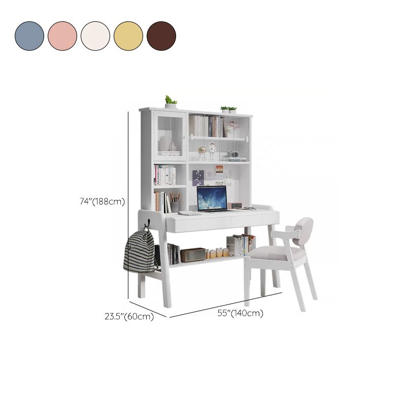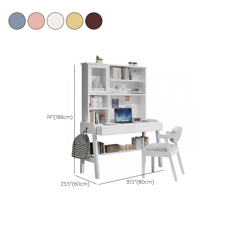 Adjustable Home Kids Desk 74" H Solid Wood Desk Kids Desk and Chair with Hutch