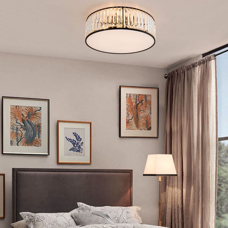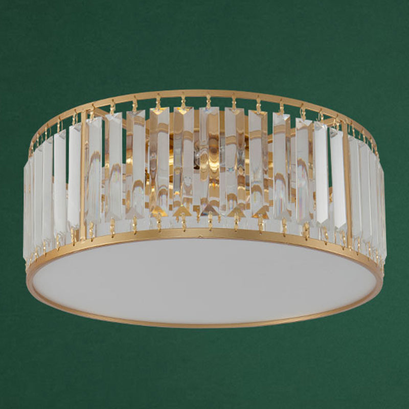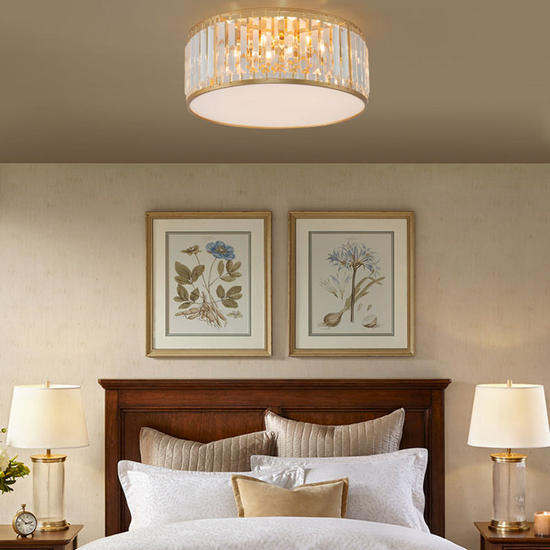 American Style Ceiling Light Cylinder Shape Ceiling Lamp with Crystal Shade for Bedroom