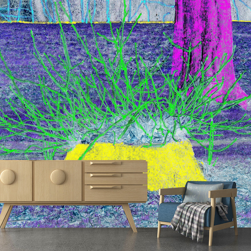 Art Deco Grass Painting Mural Rose Red-Blue-Green Living Room Wall Decoration, Custom Print