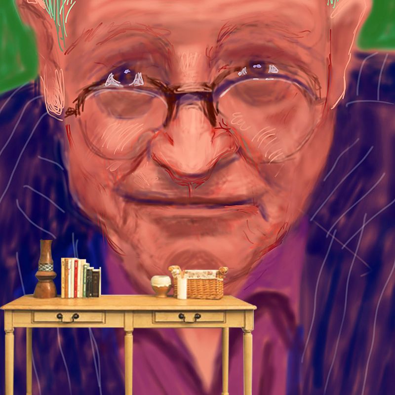 Art Portrait Old Man Murals Orange-Green Stain Proof Wall Decoration for Bedroom