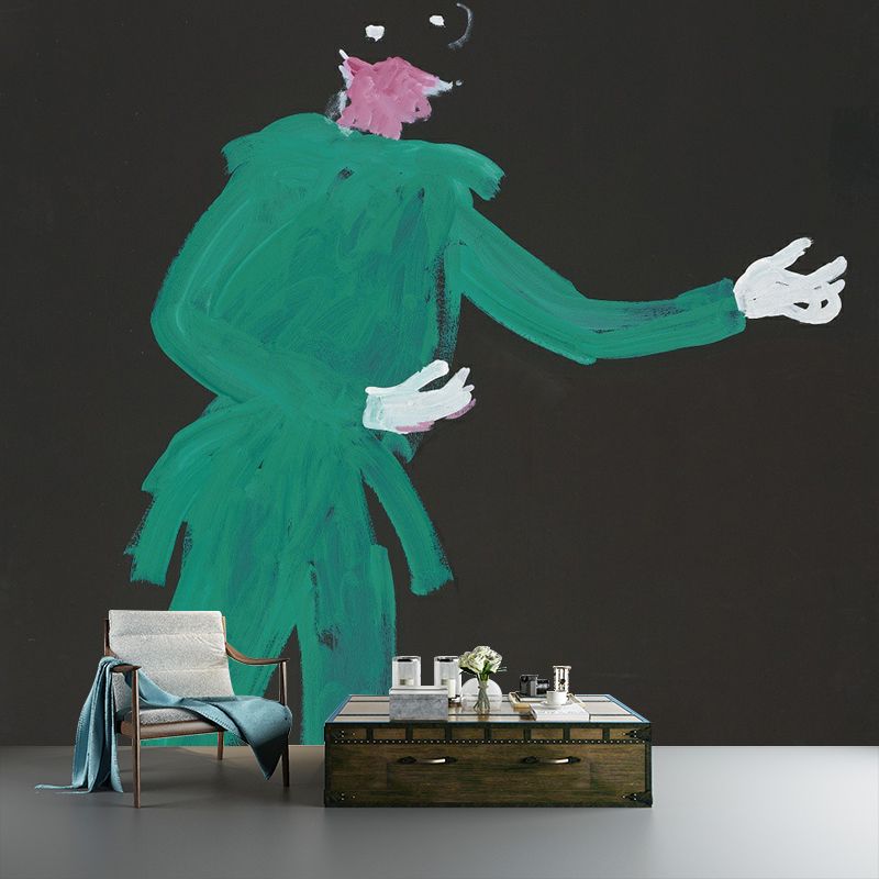 Artistic Circus Actor Mural Wallpaper Black-Green Figure Painting Wall Decoration