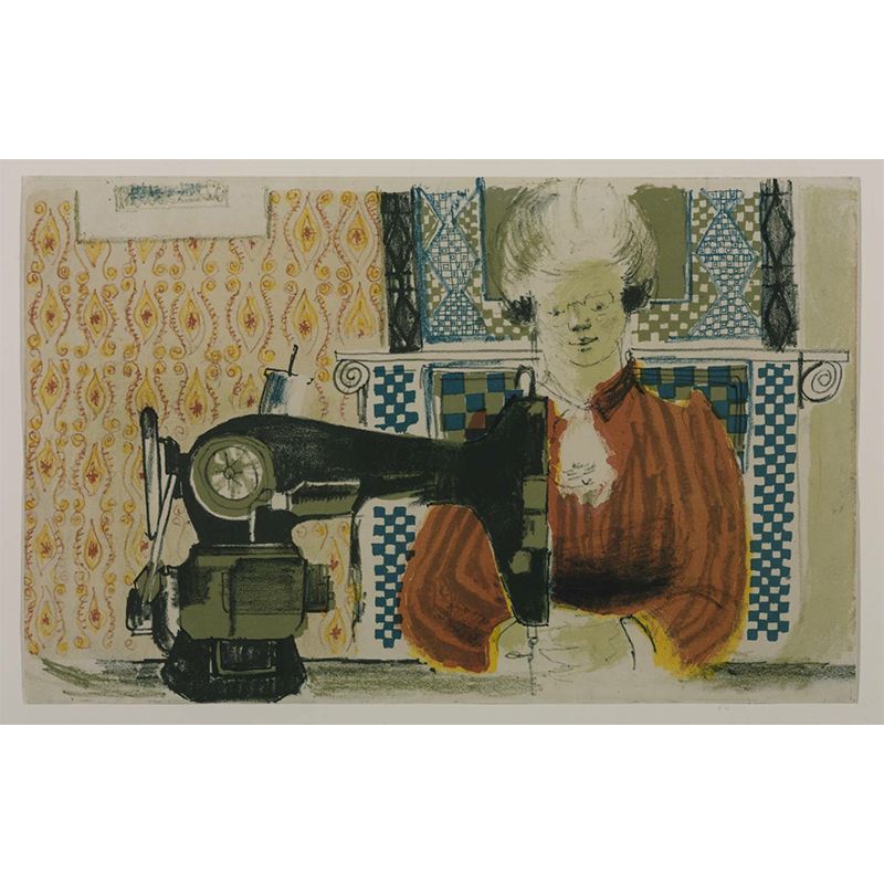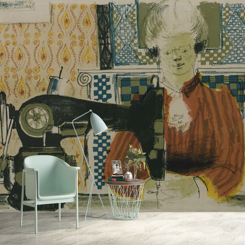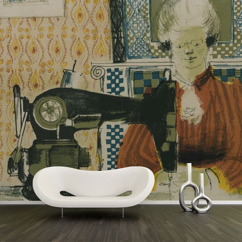 Artistry Mom Sewing Painting Mural Decal Yellow-Brown Living Room Wall Decor, Custom Made