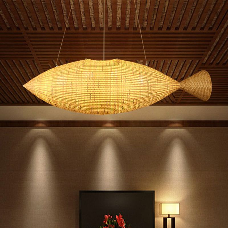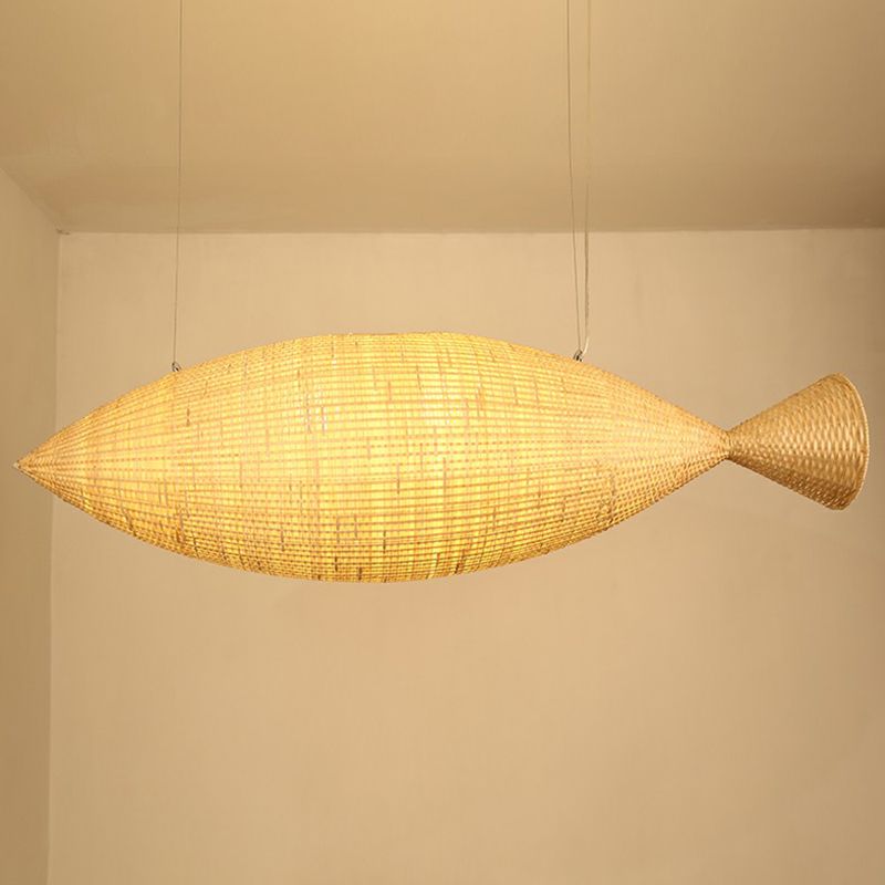 Asia Fish Shaped Hanging Light Bamboo Dining Room Suspension Pendant Light in Beige
