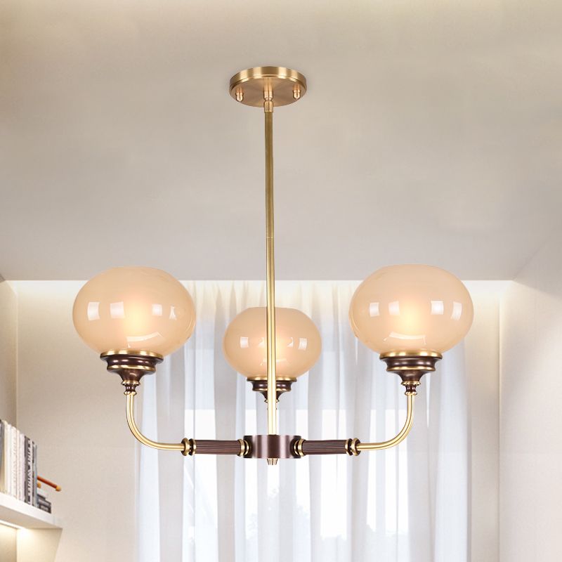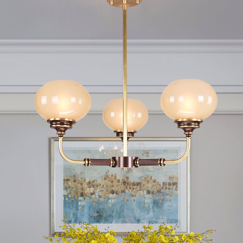 Ball Frosted Glass Ceiling Chandelier Colonial 3/6 Heads Dining Room Pendant Light in Black and Gold