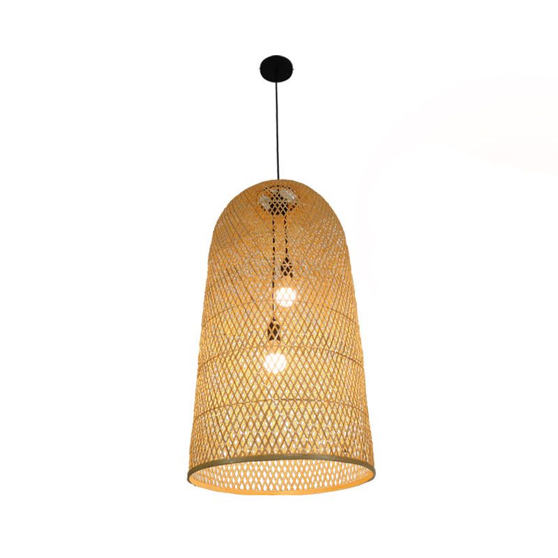 Bamboo Elongated Pendant Chandelier Asian 2 Lights Wood Drop Lamp for Living Room