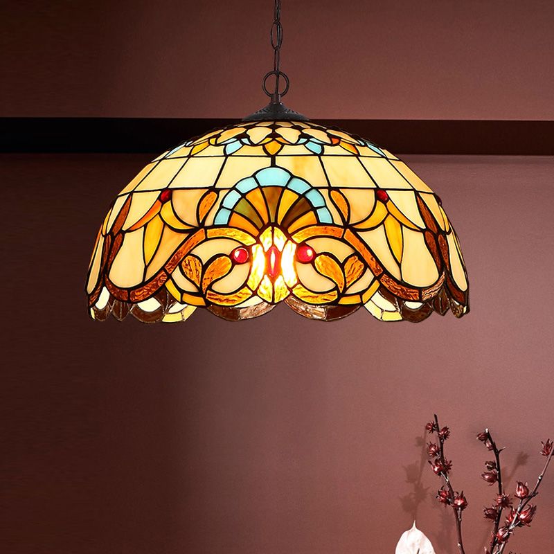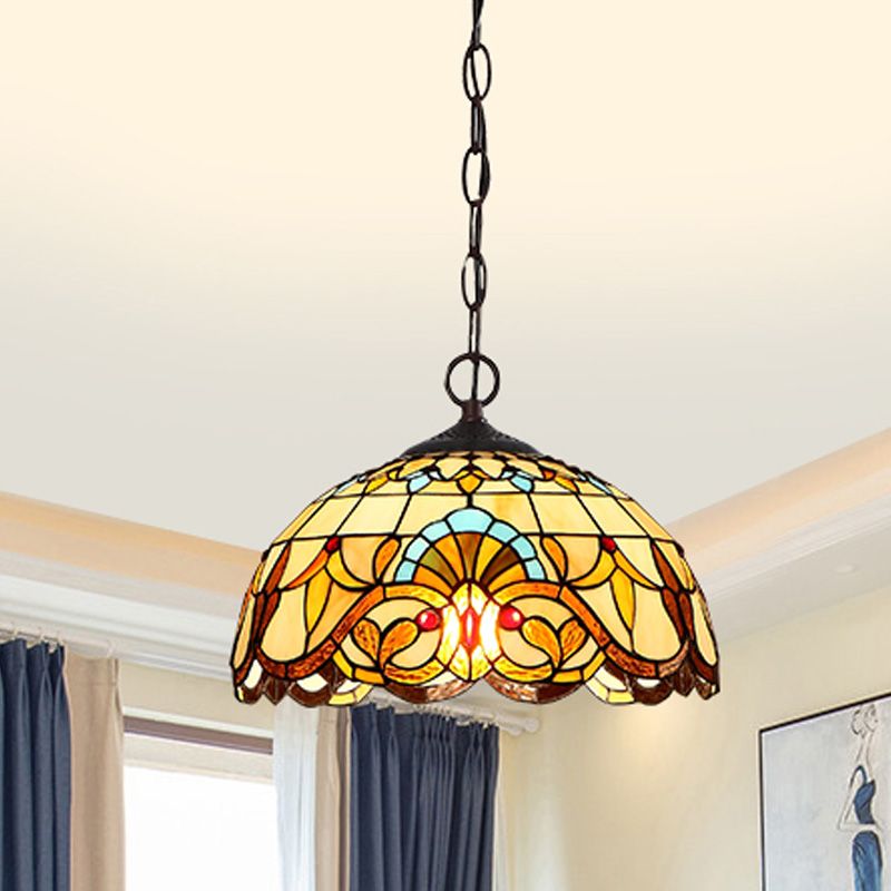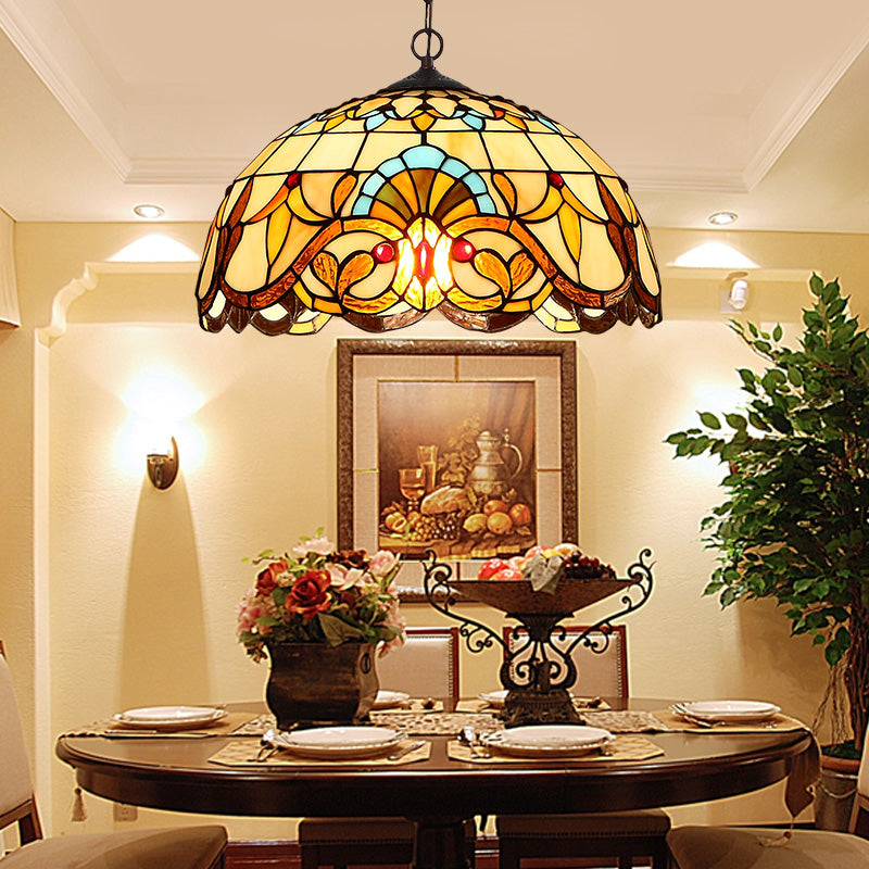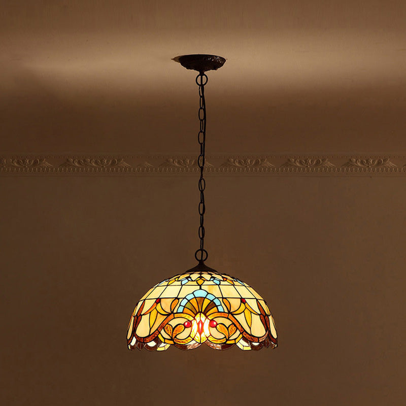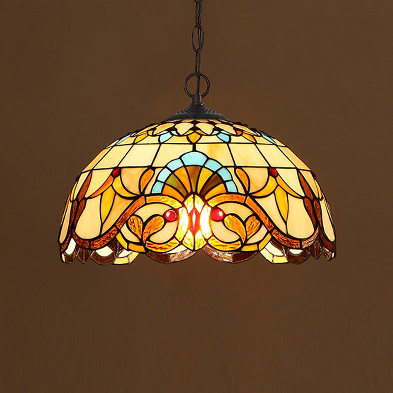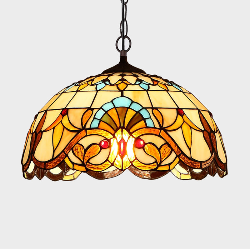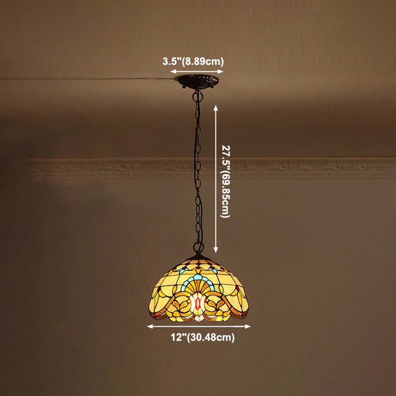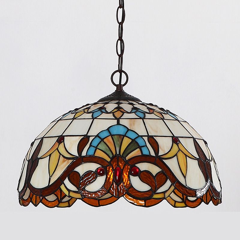 Baroque Art Glass Hanging Lamp Kit Bowl Shade Ceiling Pendant Light for Hallway