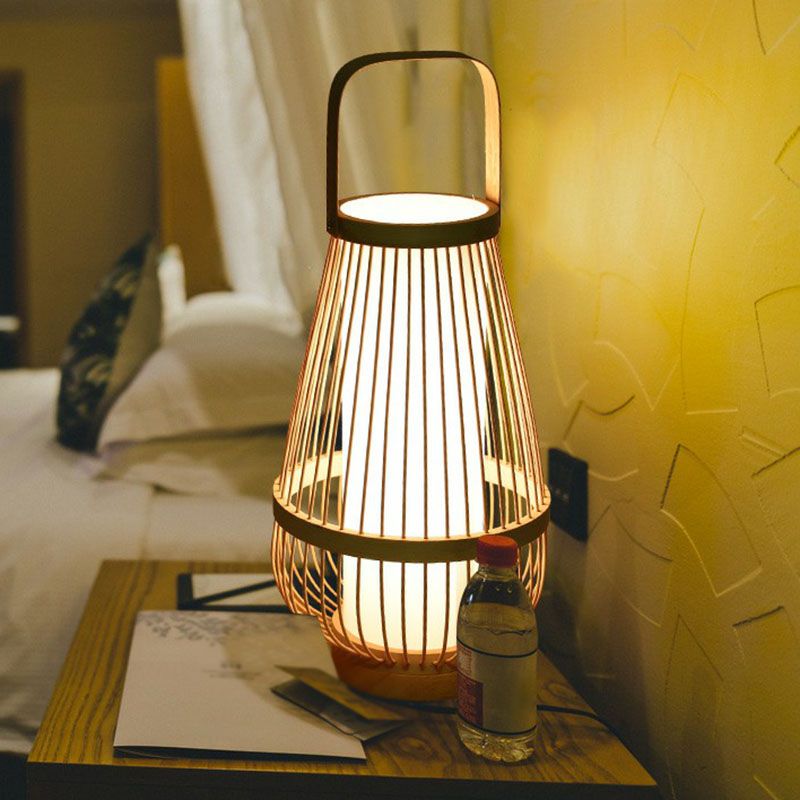 Basket Shaped Bamboo Table Lamp Minimalist 1��Head Wood Nightstand Light for Restaurant