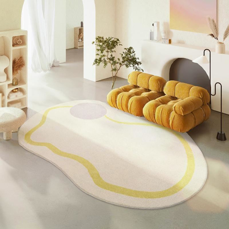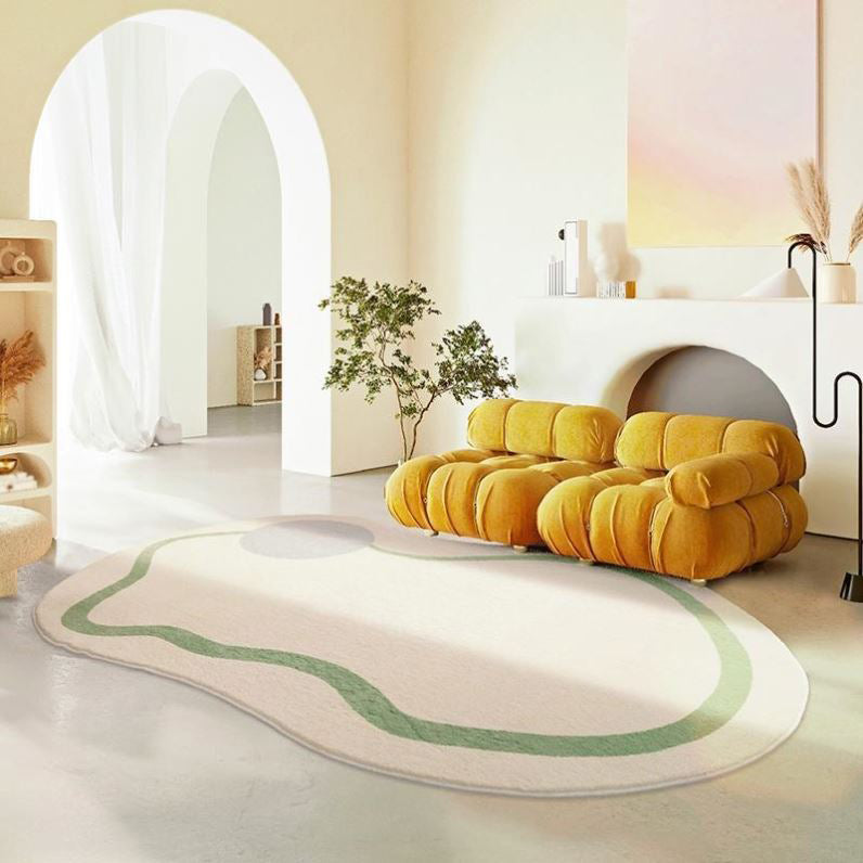 Beige Casual Rug Polyester Striped Rug Non-Slip Backing Rug for Living Room