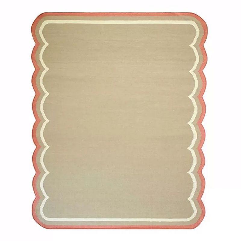 Beige Simple Rug Polyester Striped Area Rug Non-Slip Backing Rug for Home Decoration