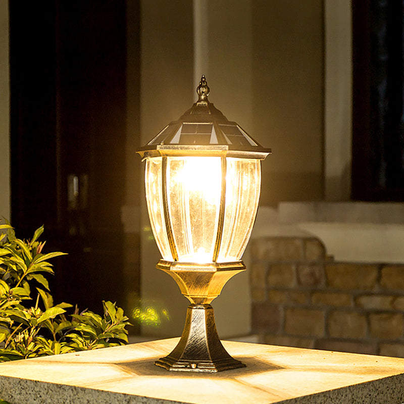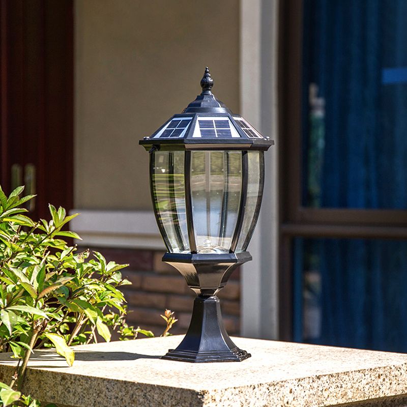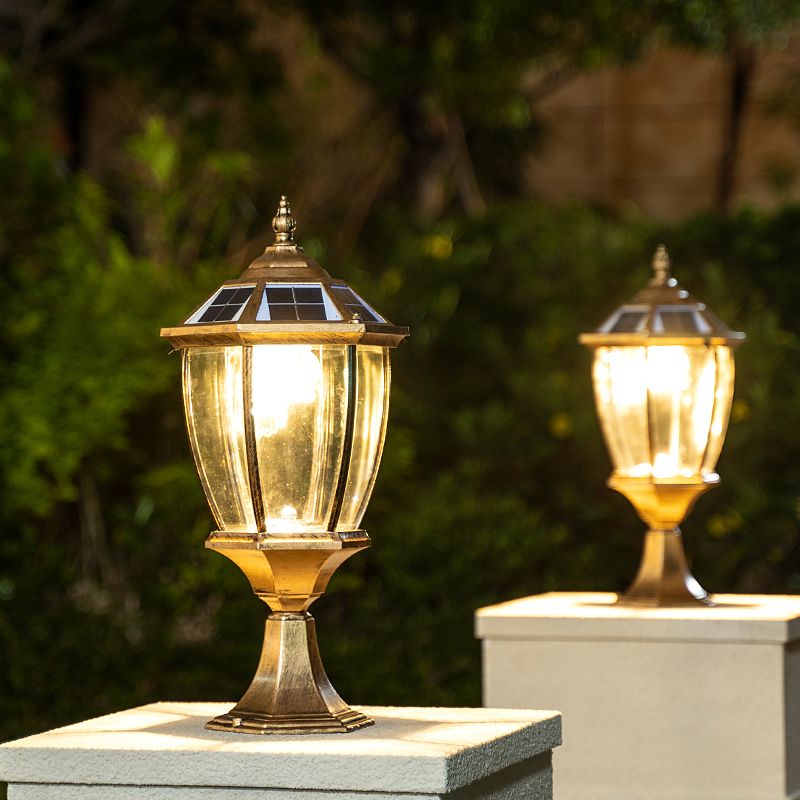 Bell Shade Clear Glass LED Landscape Lighting Classic Outdoor Solar Pier Mount Light