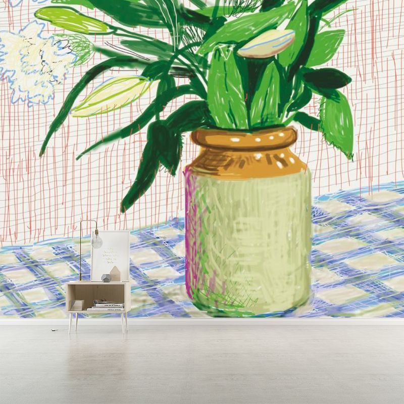 Bewitching Flowers in Pot Murals for Living Room Still Life Wall Art, Custom Size Available