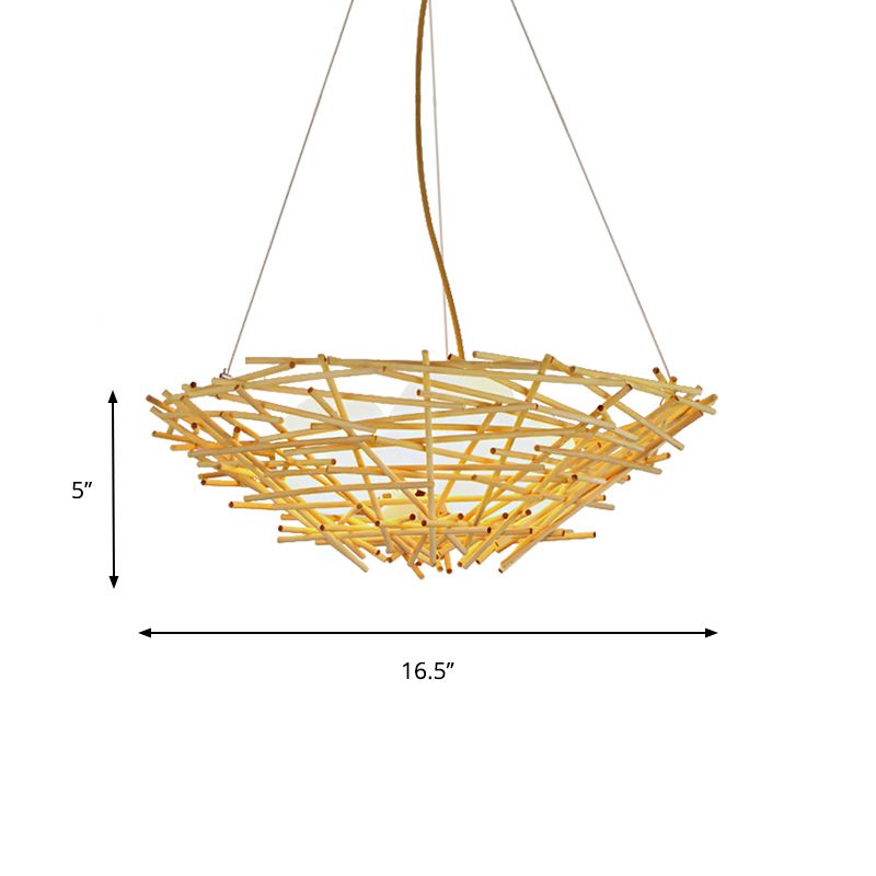 Birdnest Suspension Pendant Contemporary Wood 1 Bulb Beige Hanging Light Kit, 16.5"/24.5" Wide