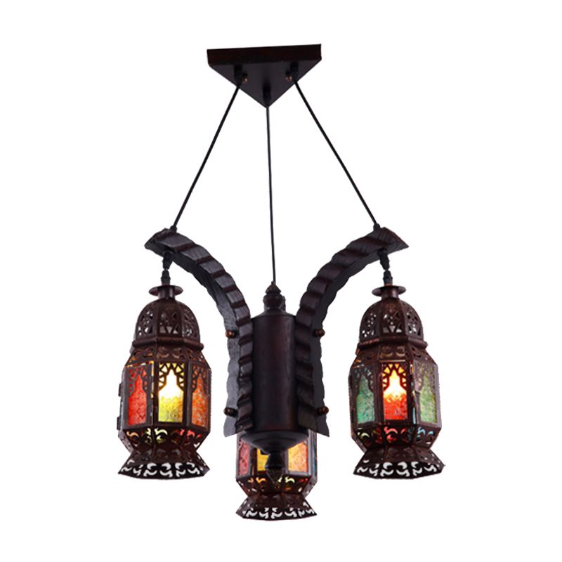Black 3-Light Hanging Chandelier Arab Metal Lantern Suspension Lamp for Living Room