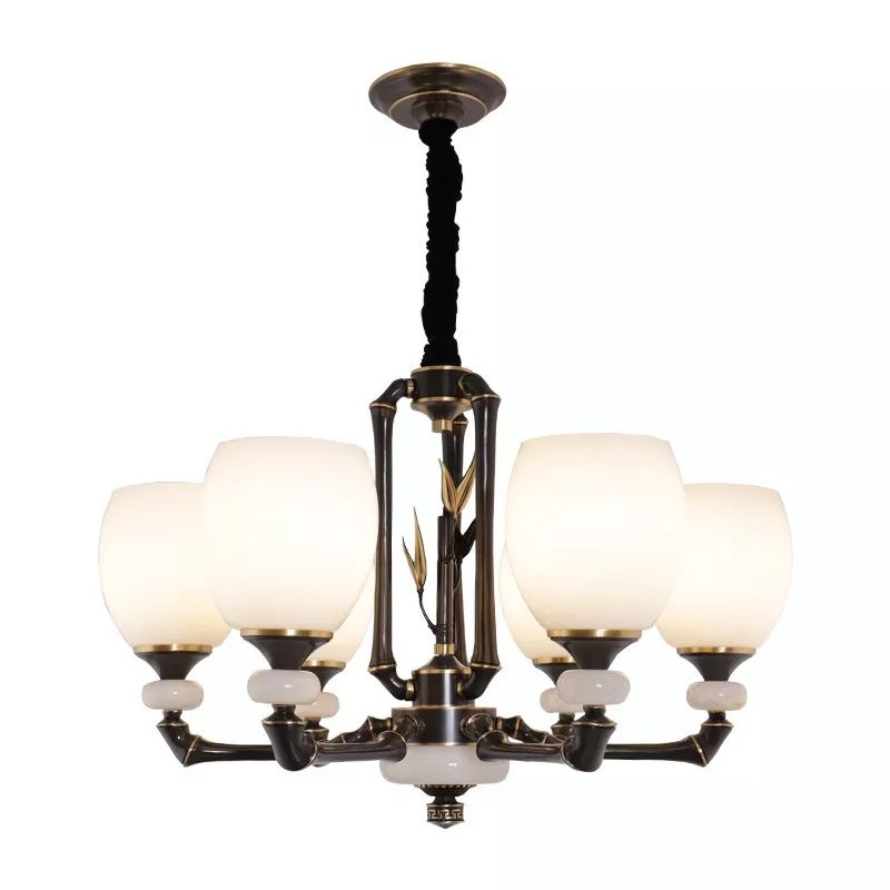 Black Bell Suspension Lighting Vintage Cream Glass 6 Heads Dining Room Hanging Chandelier