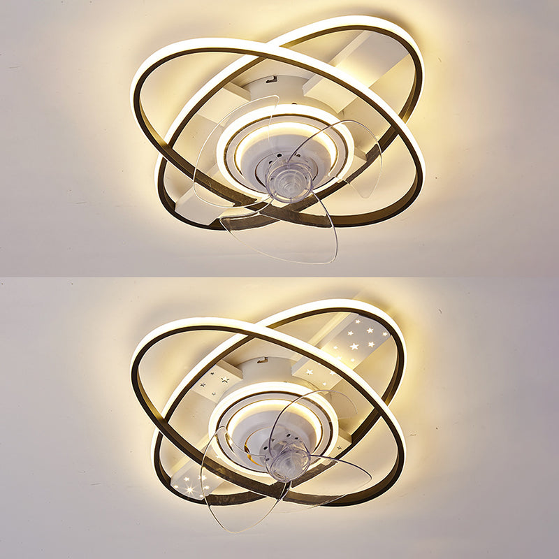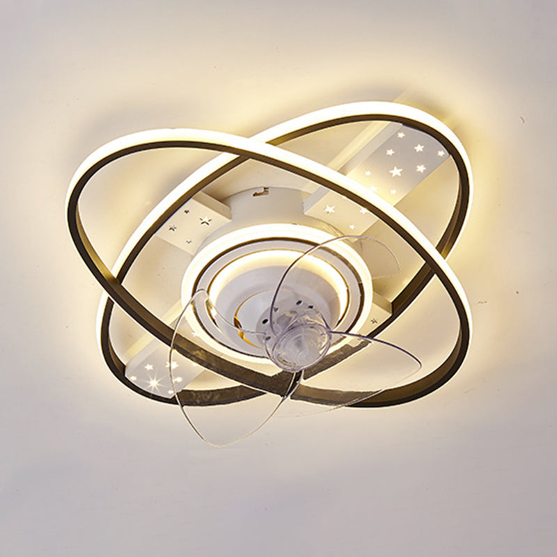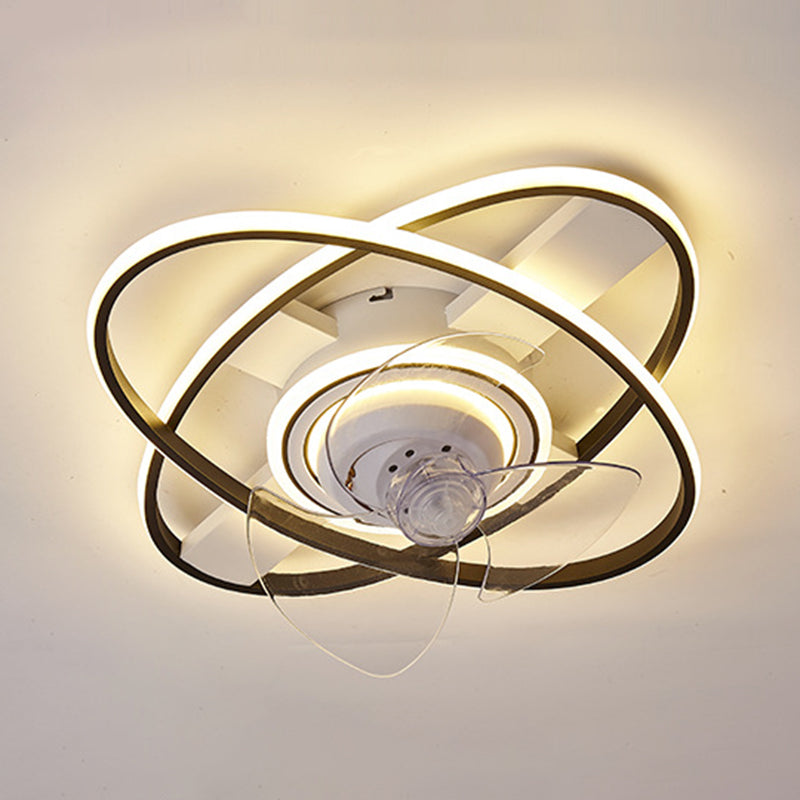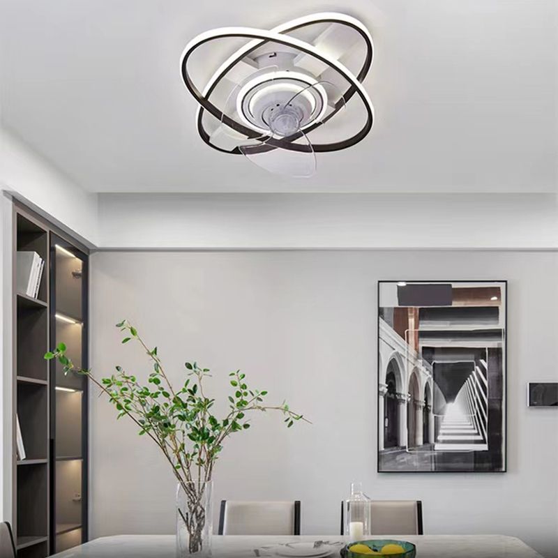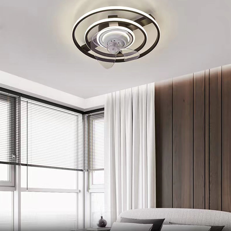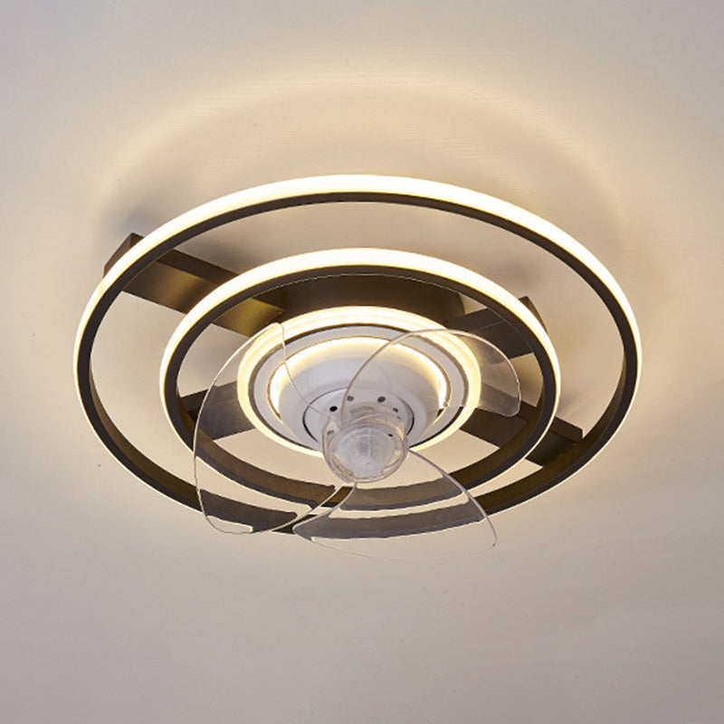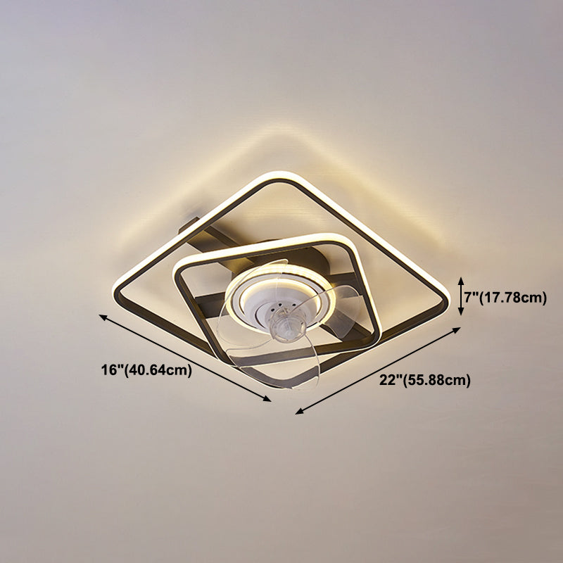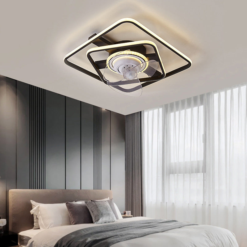 Black Geometry Flush Mount Ceiling Fan Simplicity LED Semi Flush Light