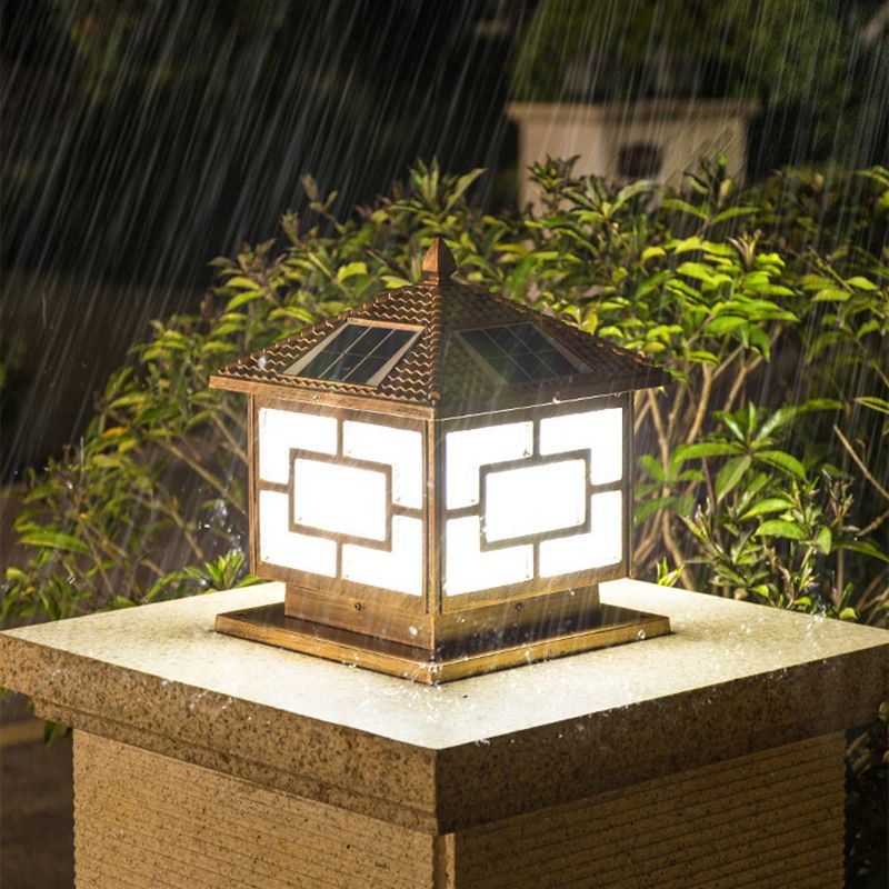 Black/Golden Waterproof Outdoor Lights Square Pillar Lamp for Garden