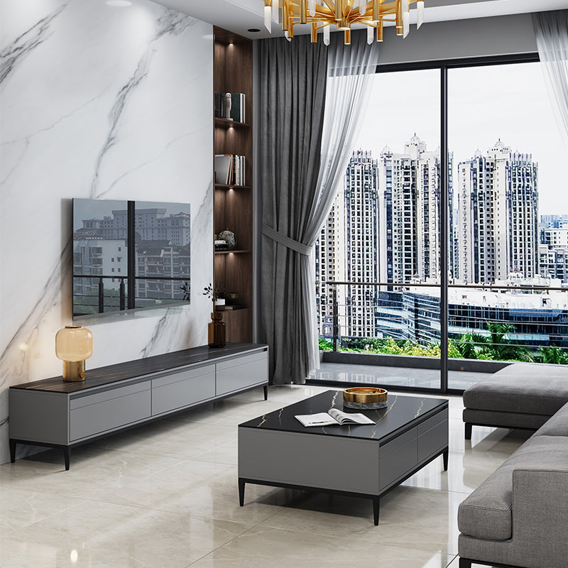 Black Slate TV Cabinet Modern Minimalist Home Closed TV Stand Console