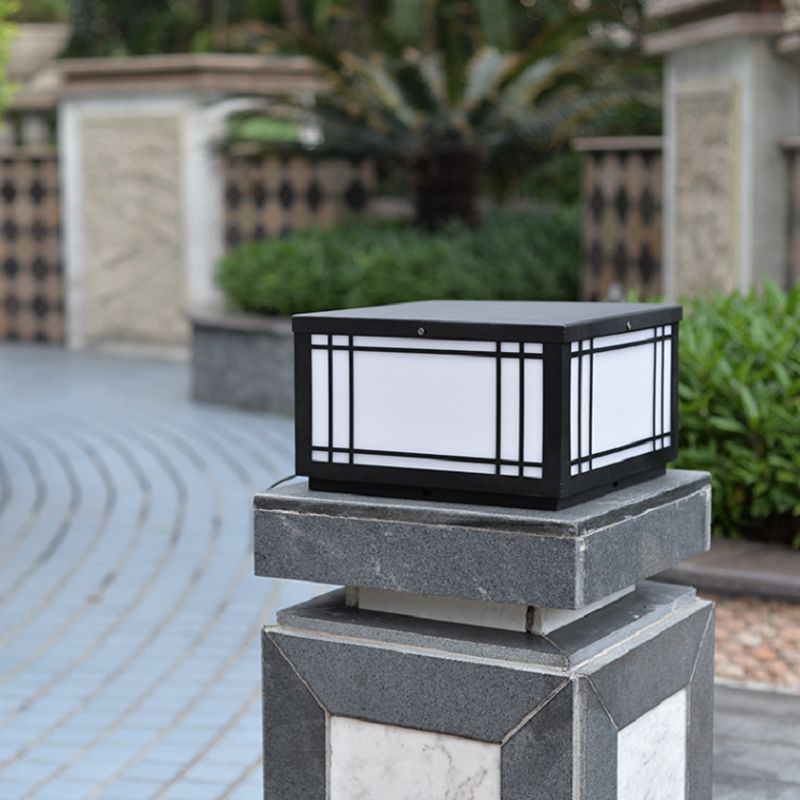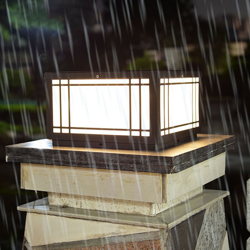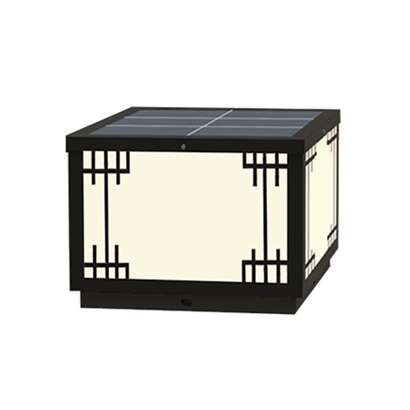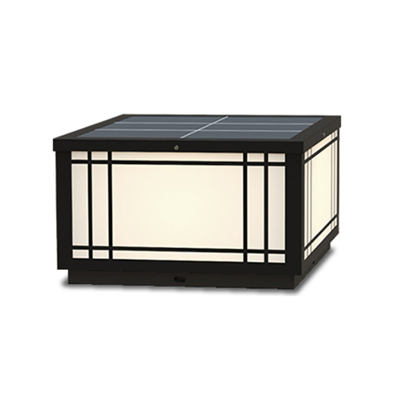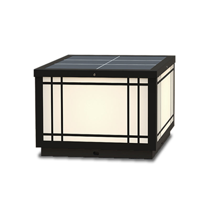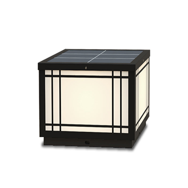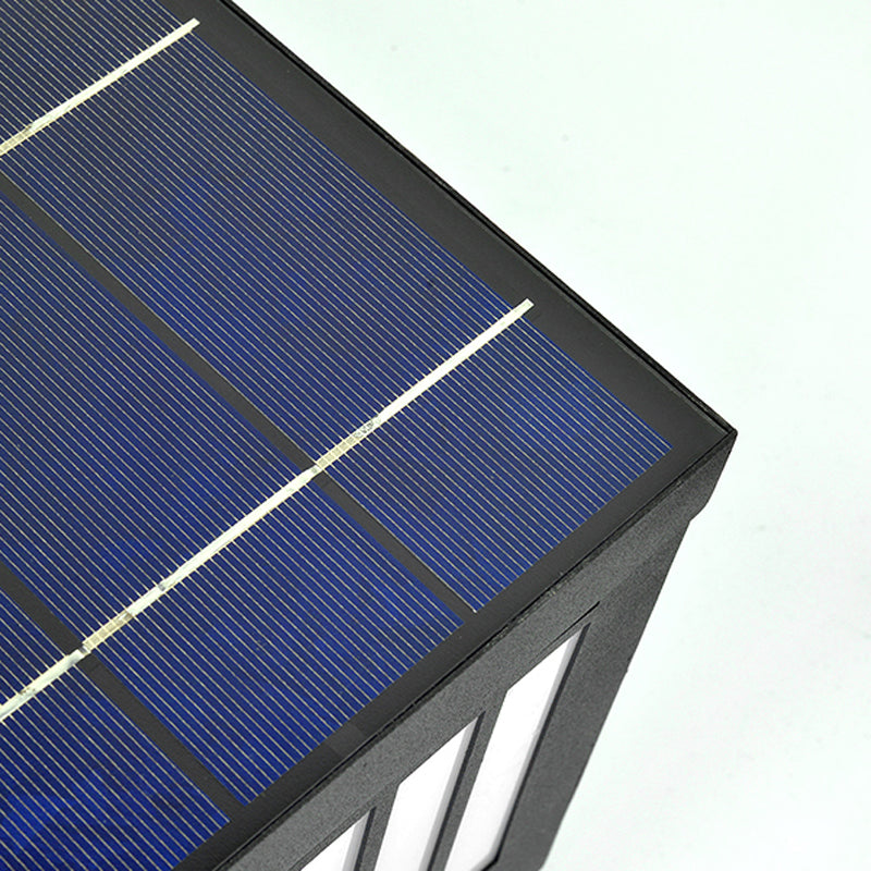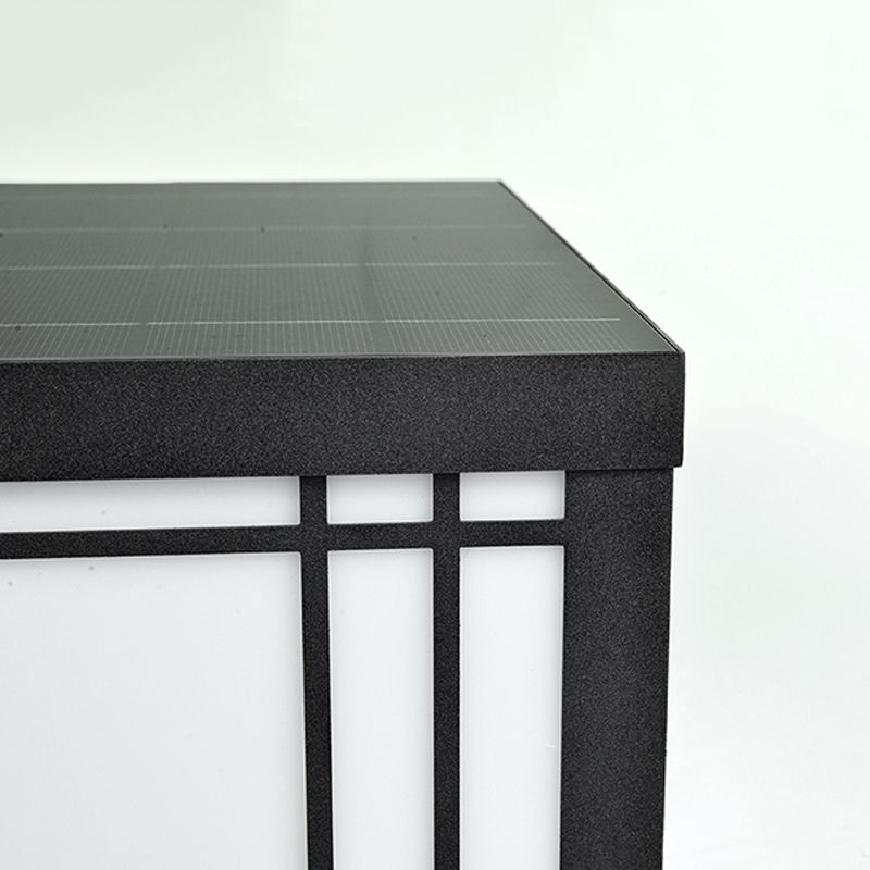 Black Solar Energy Pillar Lamp Modern Metal Square Outdoor Light for Garden
