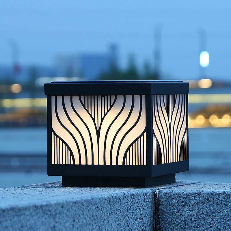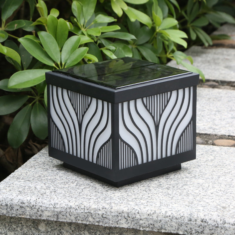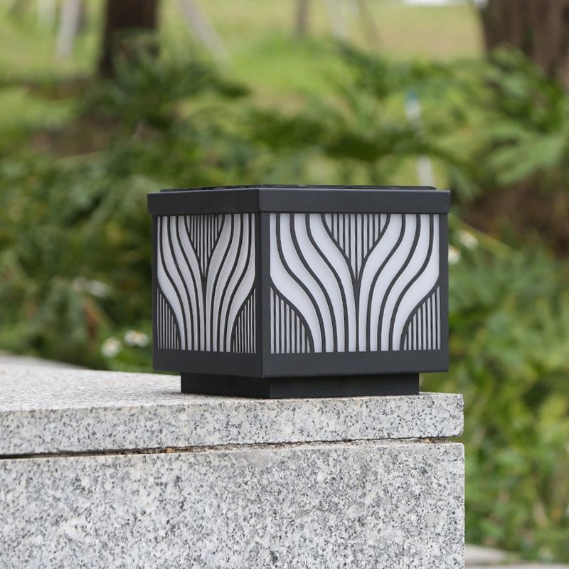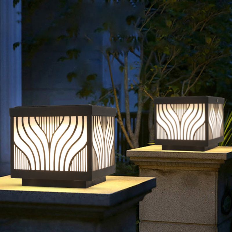 Black Waterproof Pillar Lamp Square Solar Outdoor Lights for Garden