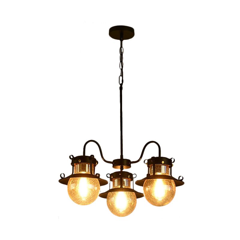 Black Wheel Chandelier Classic Metallic 3/6/8-Head Living Room Pendant Light Fixture with Globe Clear Glass Shade