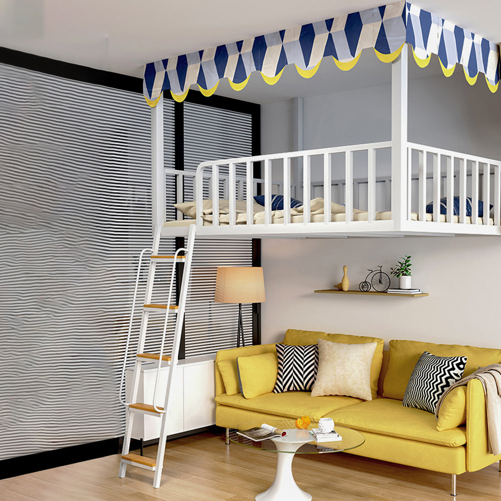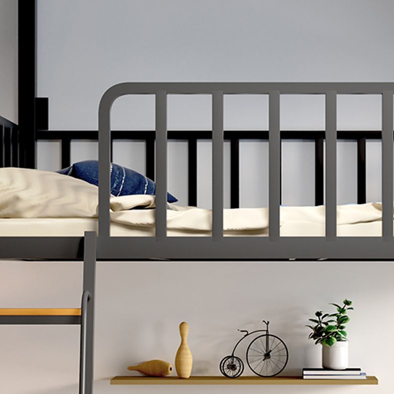 Black/White Loft Bed Metal Open Frame Kids Bed with Guardrail