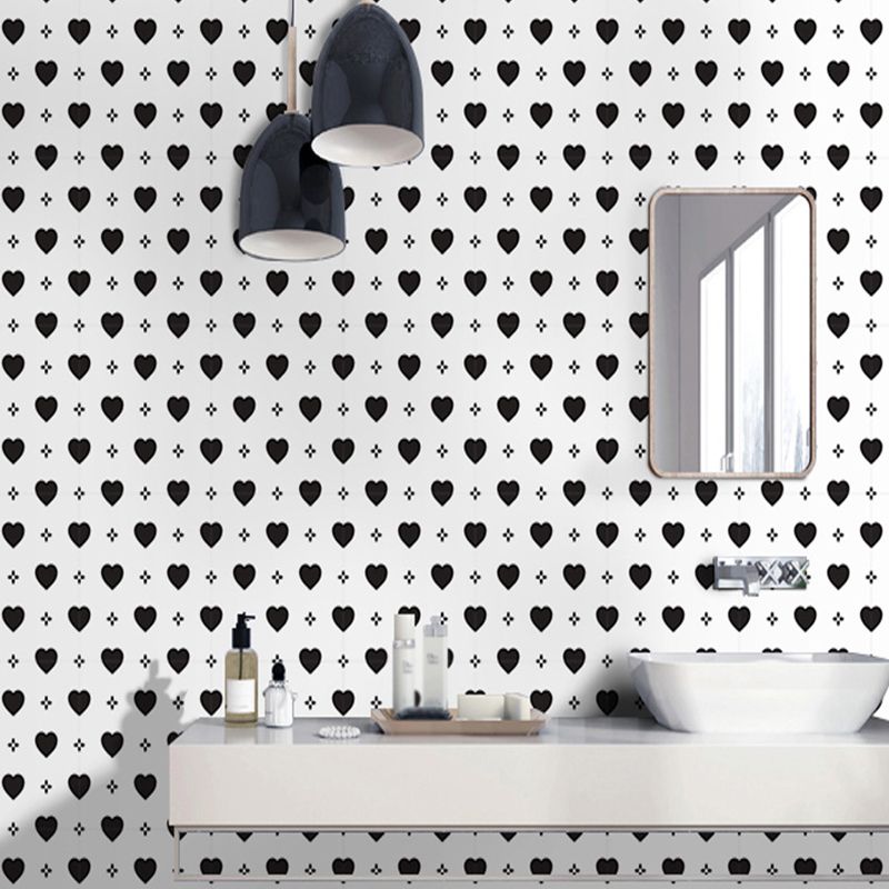 Black-White Loving Heart Wallpapers Self Sticking Modern Living Room Wall Decor (12 Pcs)