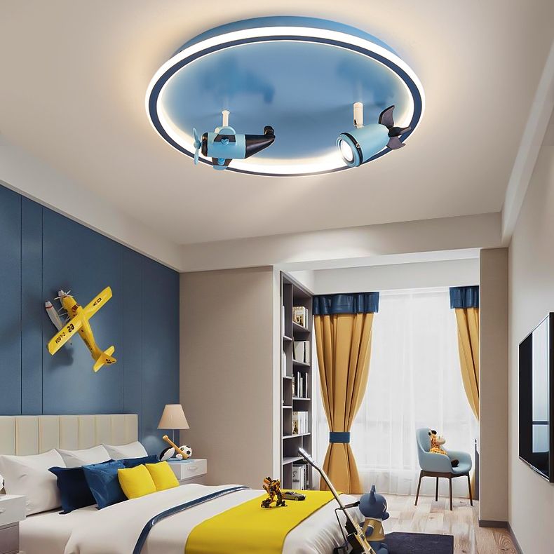 Blue Acrylic LED Flush Mount 1-Light Creative Rounded Flush Ceiling Light for Children Room
