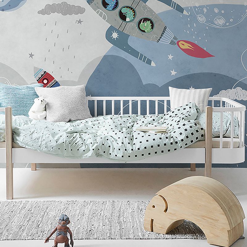 Blue and Grey Rocket Mural Waterproof Wall Covering for Children's Bedroom