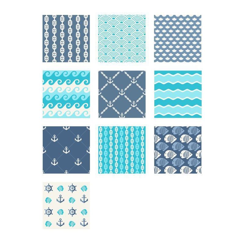 Blue Nautical Wallpaper Panel Set Peel and Stick Mediterranean Kids Room Wall Decor