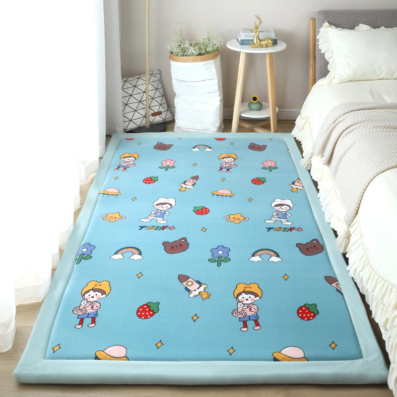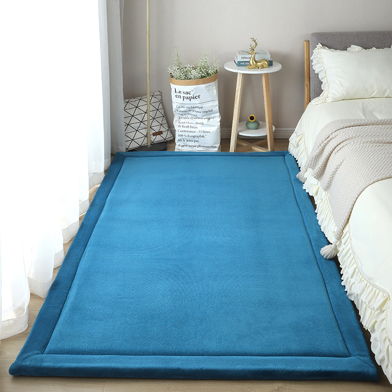 Blue Pure Color Area Rug Polyester Area Carpet Non-Slip Backing Area Rug for Living Room