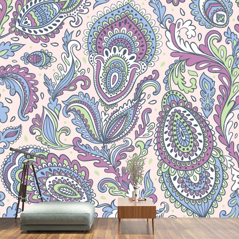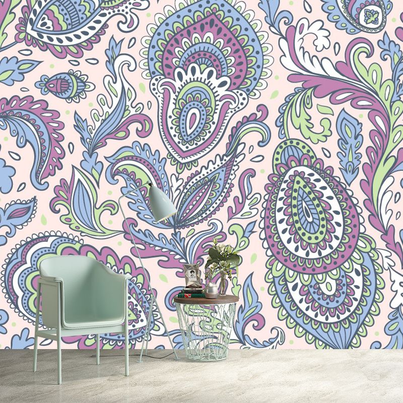 Blue-Purple Boho Chic Mural Wallpaper Extra Large Peacock Elements Wall Art for Bedroom