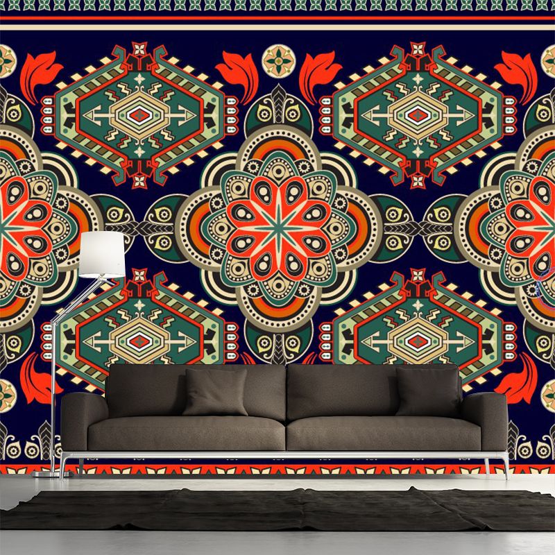 Bohemia Seamless Flower Wall Mural Red-Green Symmetry Wall Art for Living Room Decor