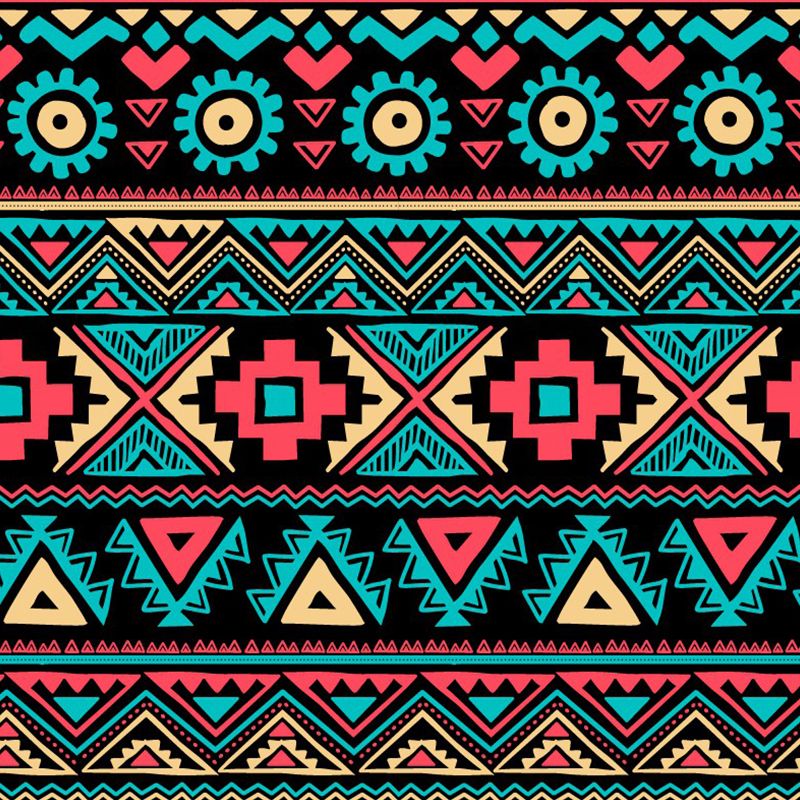 Boho-Chic Seamless Pattern Murals Red-Yellow-Green Bedroom Wall Covering, Custom Print
