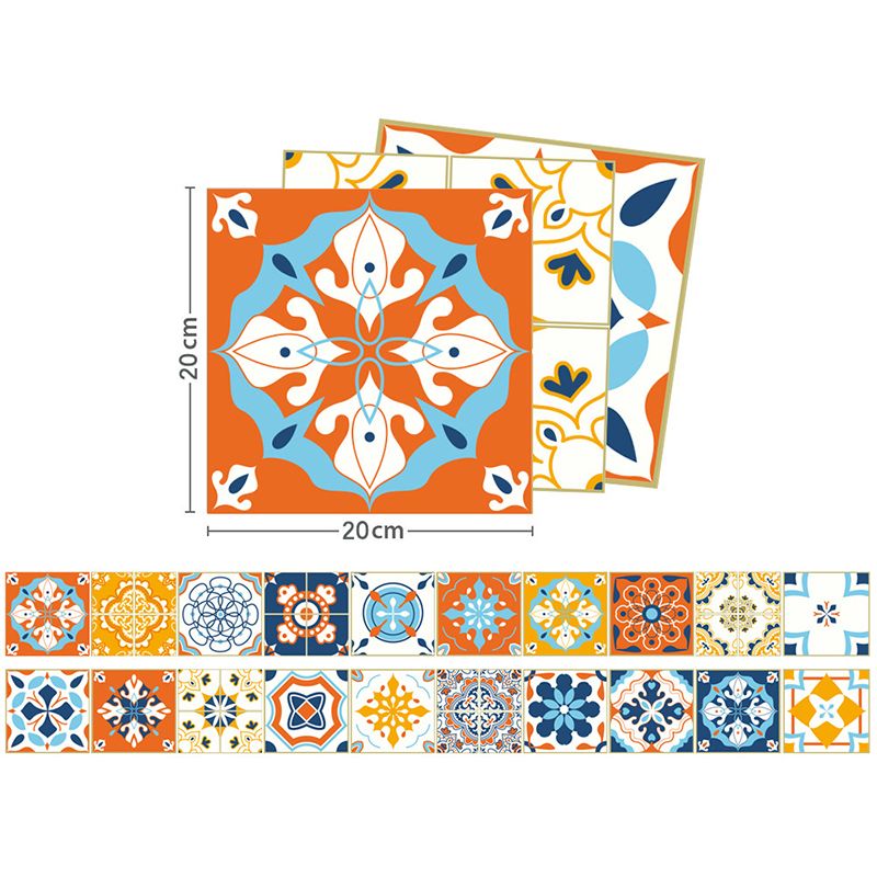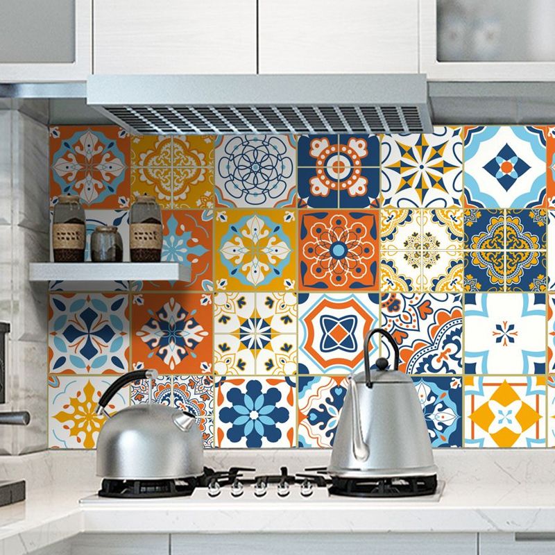 Boho Faux Tile Wallpaper Panel Set Orange-Blue Peel and Stick Wall Art for Bathroom