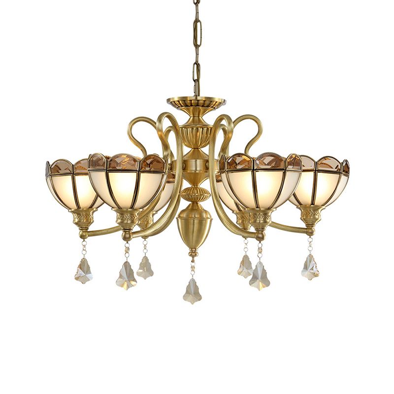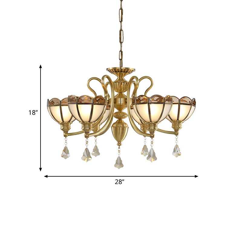 Bowl Frosted Glass Suspension Pendant Colonial 6 Bulbs Living Room Chandelier Lighting in Gold