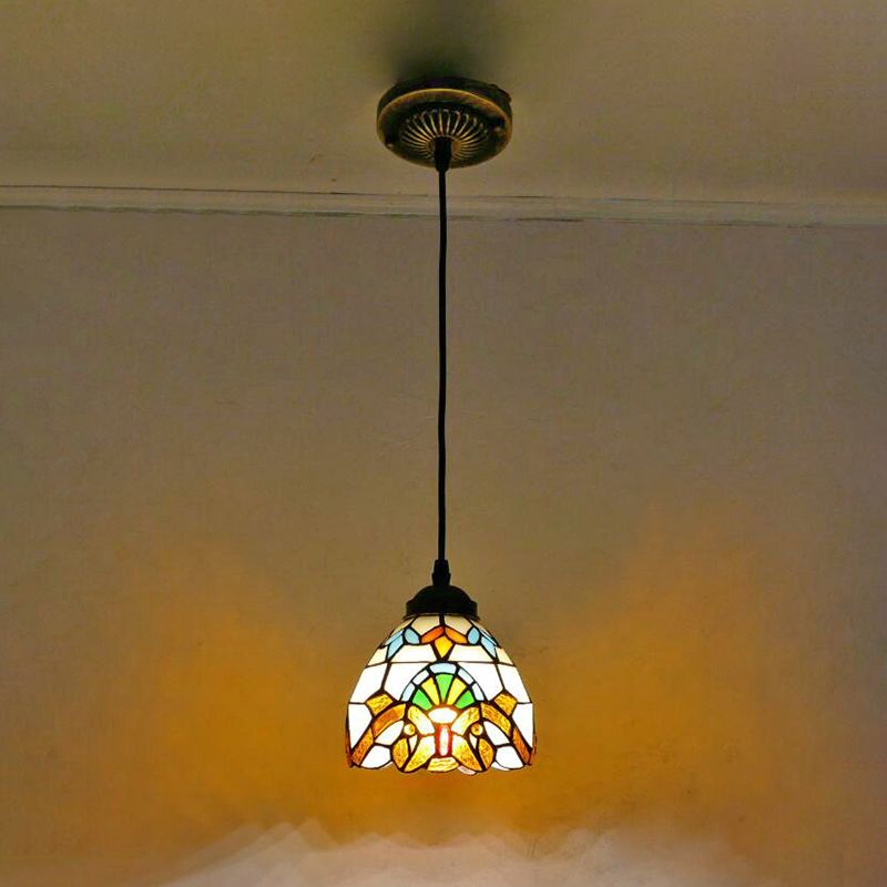 Bowl Pendant Light Tiffany-Style 1 Light Stained Glass Hanging Lamp for Dining Room